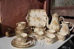 Ceramic Set for 6 Art Nouveau French Ironstone. Good condition, there are chips and hairlines on some pieces, please see all Photos.