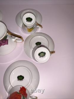 This product is a stunning vintage LG Porcelaine Dec a la Main set, featuring a multicolor decorative plate and cups made of porcelain. Manufactured in France in the 1970s, this set is perfect for special occasions like anniversaries or all occasions. The vintage charm and art pottery production style make it a unique and collectible addition to any home decor collection. With its intricate design and high-quality craftsmanship, this vintage set is sure to impress and delight any coffee or espresso lover.