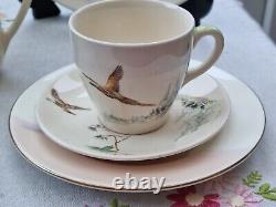 Vintage Royal Doulton The Coppice Coffee Set Pot Cup Milk Jug Pheasant. High quality antique coffee set. Milk jug and sugar bowl. There is a small chip on of the cup.