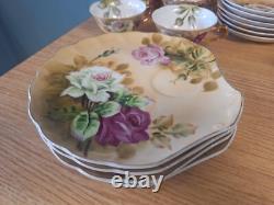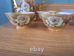 Elevate your morning routine with the charm of the Vintage Brown Heritage Rose porcelain set. This three-piece collection, crafted with care in Japan, features a classic round shape and an exquisite floral pattern that brings a touch of nostalgia to your table. Each piece, from the elegantly curved coffee pot to the dainty cups and plates, is adorned with the delicate Heritage Rose design, creating a cohesive and delightful dining experience. Made by Lefton, the set boasts an original beige color that complements any decor, adding warmth to your coffee service.