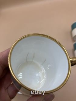 Cups are all lovely and clean inside but dull / grubby to the exterior. Expected rubs to bases, gilt on rim and handles rubbed in places. One cup has 3 cracks on the inside which can be seen all the way through but no other chips, cracks or crazing.