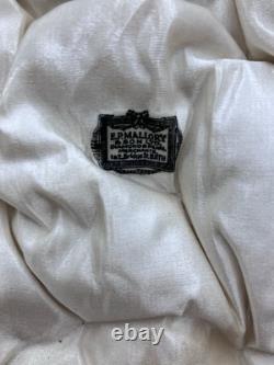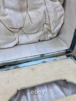 Still nice and solid although the shagreen has started to come away / tear in places. The cream velvet and satin lining is heavily stained and browned with age.