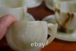This sophisticated; beautiful, luxurious natural onyx set of 6 coffee cups with saucers was handmade n. Onyx is the stone of power and cup is healing when drunk from it. Each cup is unique due to the natural variations in the stone. It can be used for hot or cold beverages. Onyx is food safe but can stain.