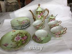 Ensemble de café et de vaisselle Lefton vintage de 22 pièces avec des roses