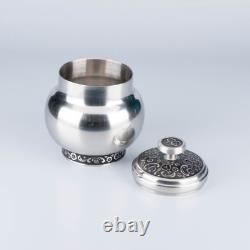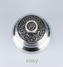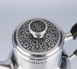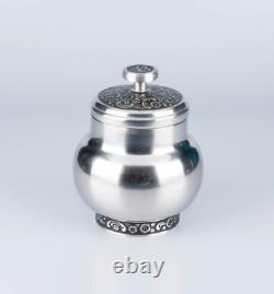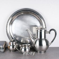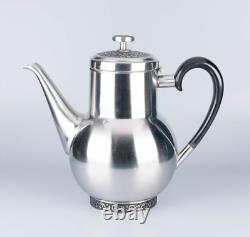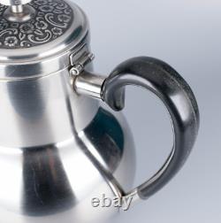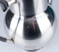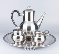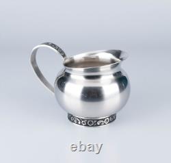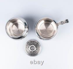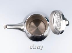 Pot à sucre : 4 pouces de haut par 3 pouces de large. Crémier : 3 pouces de haut par 4 1/2 pouces avec le manche. Théière : 8 1/2 pouces de haut x 9 1/2 pouces avec le manche. L'ensemble est en très bon état vintage. Il n'y a pas de bosses.